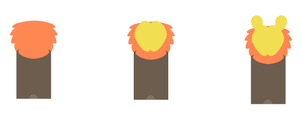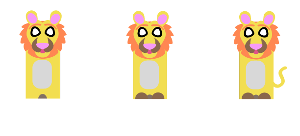 Next, glue the tummy, then the brown paws, and finally the tail. Explain that lions have strong paws with sharp claws that help them run, catch prey, and protect themselves. Their tail helps with balance when running quickly. It also helps swat flies away. You can turn this into a quick movement break by asking your child to pretend to run like a lion and then balance on one foot. For vocabulary practice, introduce action words such as “stalk,” “pounce,” and “chase.” Ask your child to use one of these words in a complete sentence about their lion puppet.